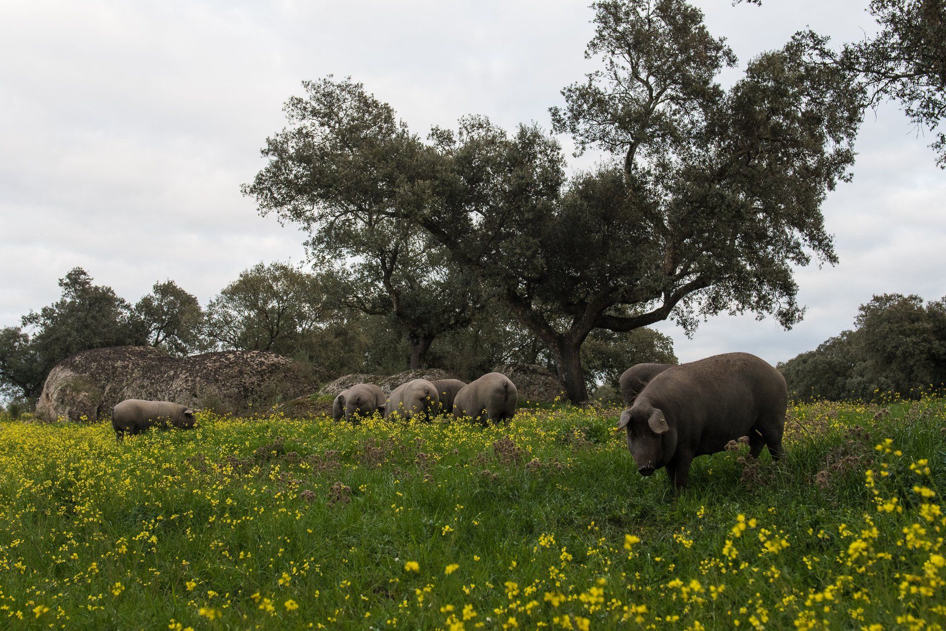Criamos y engordamos nuestros animales en total libertad en el marco incomparable de las dehesas de nuestra comarca.