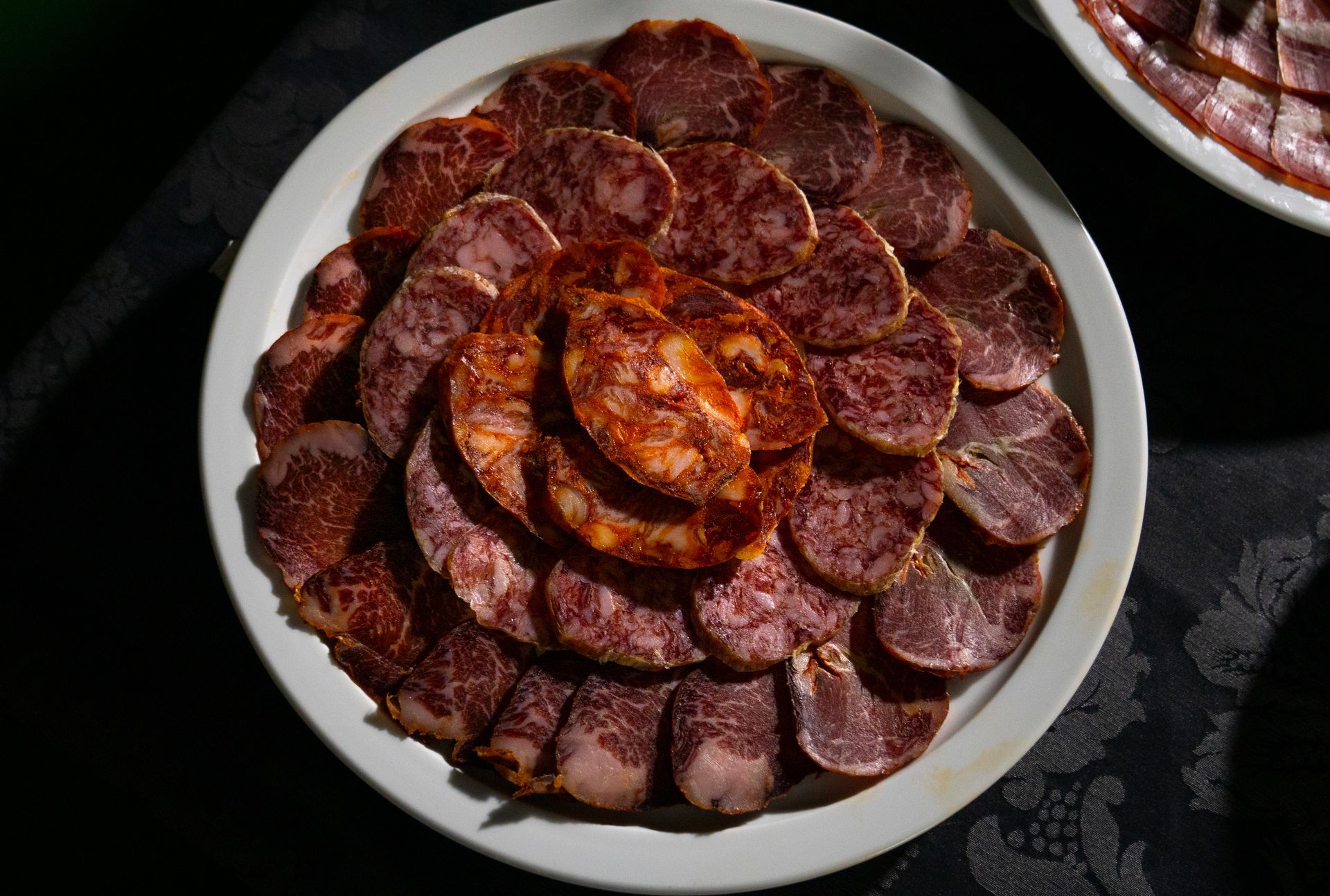 Los jamones tienen un punto de sal bajo y una curación lenta de más de 30 meses.